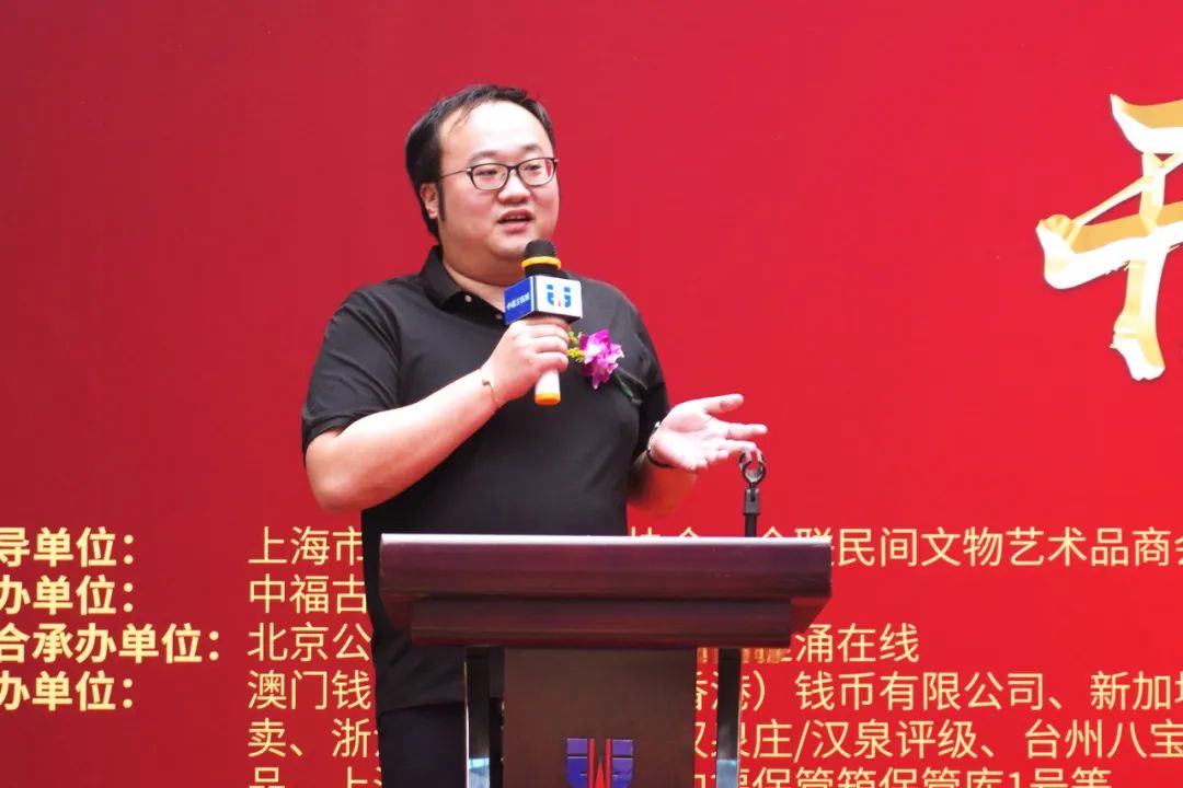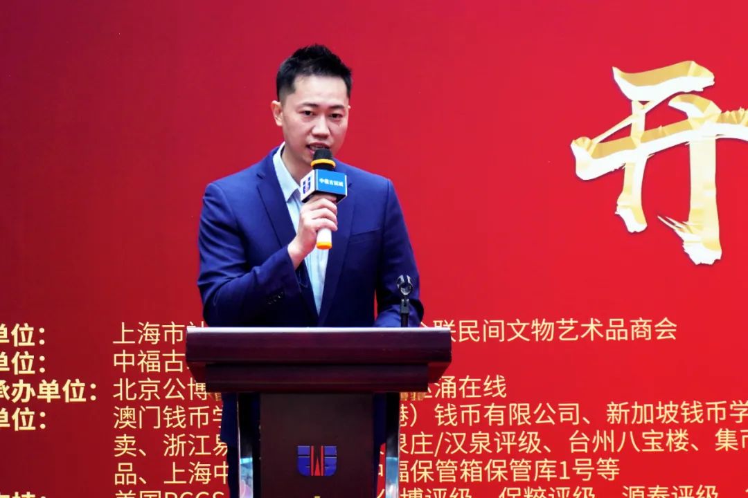 吴总首先代表中福钱币博览会组委会及中福古玩城全体员工向各位的到来表示热烈的欢迎,同时向莅临本次活动开幕式的领导、嘉宾、参展商及收藏爱好者们致以崇高的敬意。