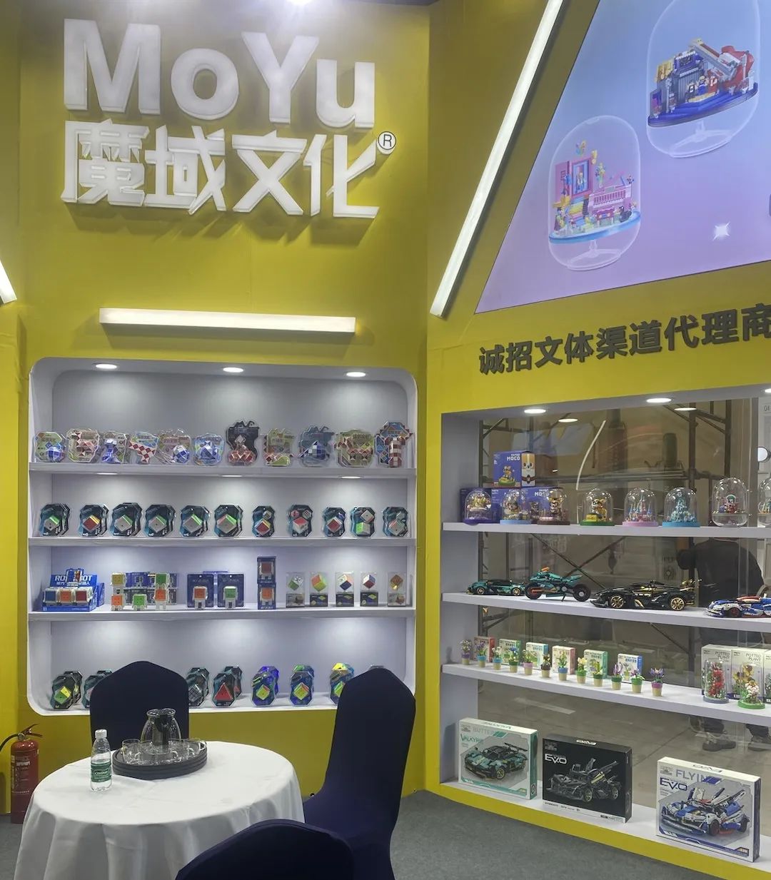 本次展会将展出入门款,竞速款产品,超高阶等系列魔方,现场还有华容道等等其他益智玩具,近期魔方机器人系列新品现场可以体验,现场设立魔友挑战区,成功挑战宇神可获得神秘礼物一份,数量有限,先到先得!
