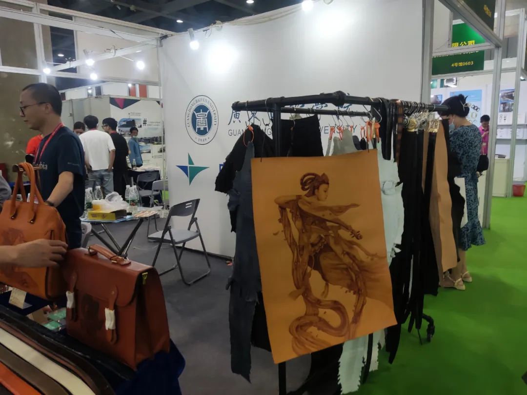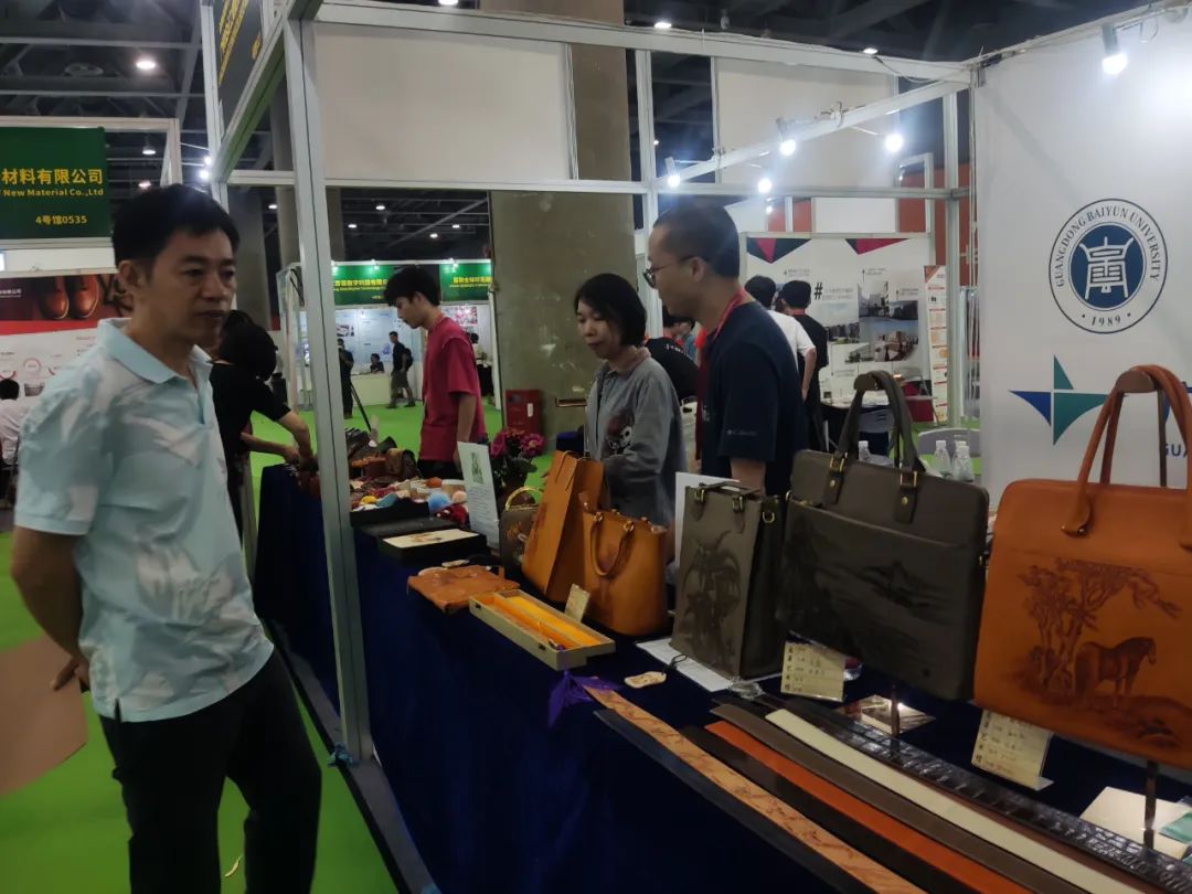 不仅如此,展会上白云学院的展位更是成为了人气最高的展位之一。除了烙画、皮艺作品的展示,白云学院的双师教学也得到了社会的高度认可,受到了大家的热烈关注。