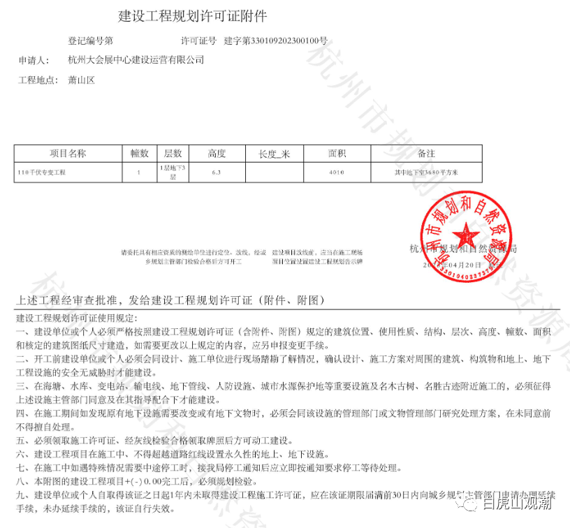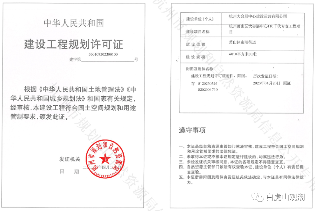 杭州萧山区大会展中心110千伏专变工程项目建设工程(含临时建设)规划许可证