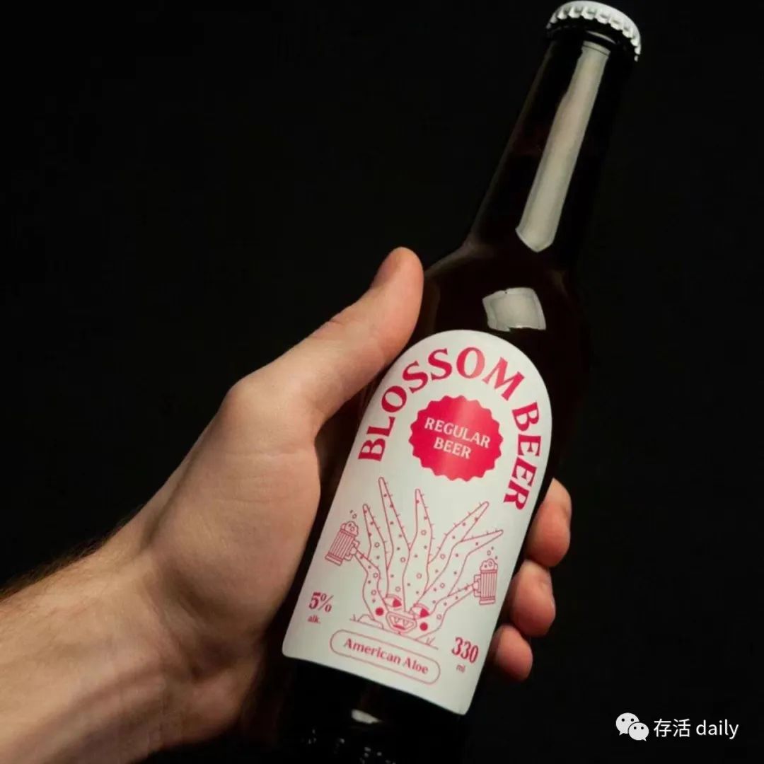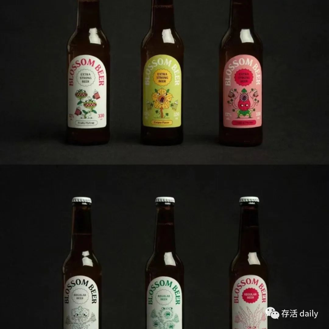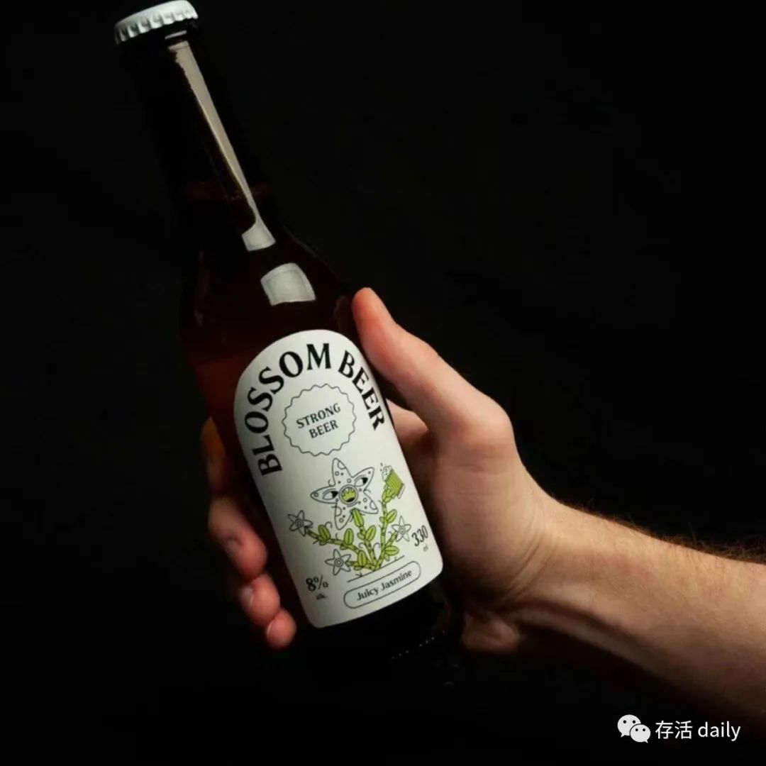 小众精酿,BLOSSOM啤酒包装设计,瓶贴使用了可爱的小插画表现出啤酒的口味。