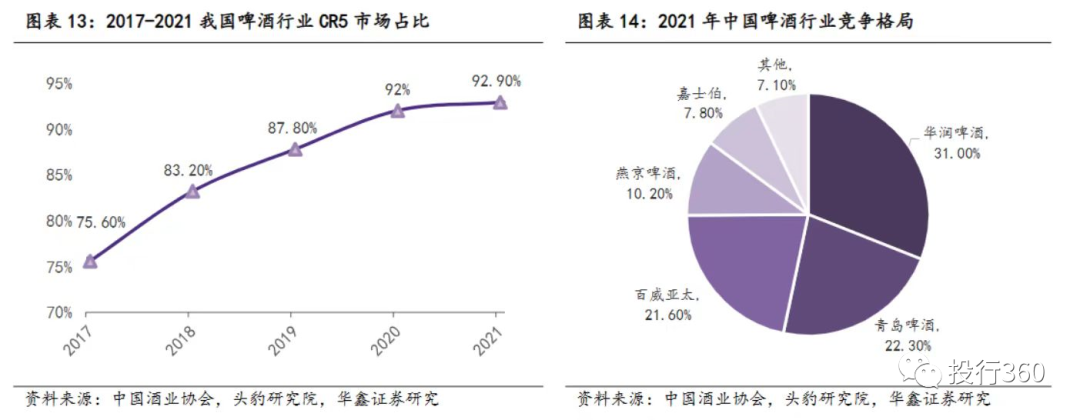 孙山山指出,我国啤酒行业CR1市占率属于中等水平,市场集中度仍有提升空间,待CR1市占率提升后头部企业将有望进一步提升盈利水平。分析人士指出,如果“大鱼吃大鱼”的市场趋势不变,经过一段时间的此消彼长,持续多年的“五强争霸”格局,将演变为“一超多强”:华润啤酒把青岛啤酒和百威英博甩开,燕京啤酒追上来,形成1+3的主流啤酒阵营。