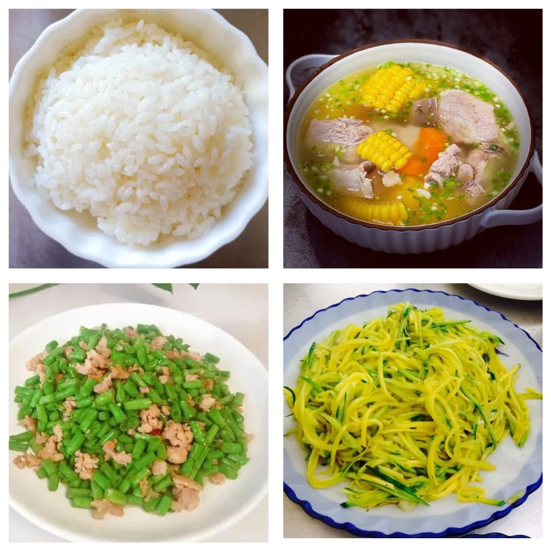 三幼 | 八宝粥 玉米粑粑 卤鸡蛋 牛奶 | 米饭 排骨玉米汤 豇豆肉末 南瓜丝 | 好吃点饼干 苹果 |