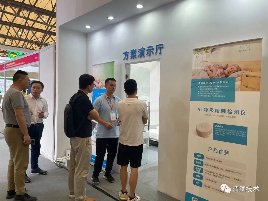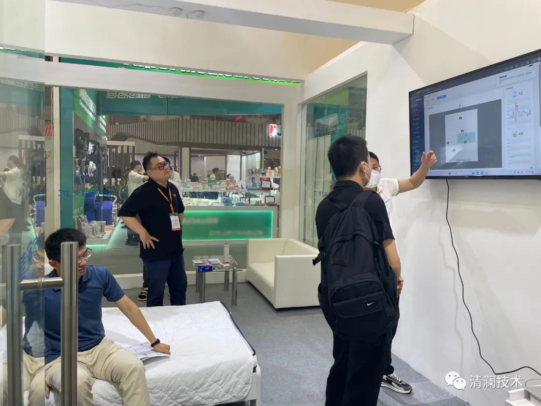 展会现场,清澜技术携全新二代养老产品(AI跌倒监测仪)、酒店产品(AI人数传感器)、医养产品(AI呼吸睡眠检测仪)等产品隆重亮相,二代产品更为小巧,功能强大、性能稳定,在一代基础上增加了多人跌倒检测、猝死告警、生命活力监测、语音对讲、睡眠质量分析、在离床监测等功能。