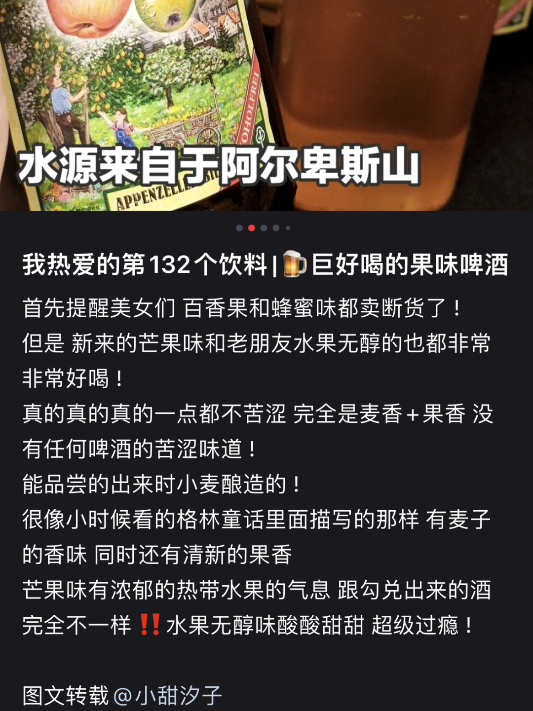28种梨和苹果,以山泉水调和,酿造出这瓶被网友评论为“好喝到冲出屏幕”的果啤。