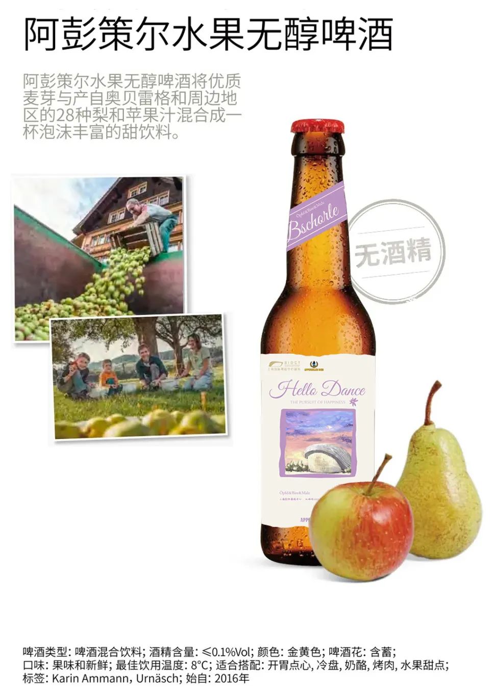 阿彭策尔水果无醇啤酒将优质麦芽与产自奥贝雷格和周边地区的28种梨和苹果汁混合成一杯泡沫丰富的甜饮料。