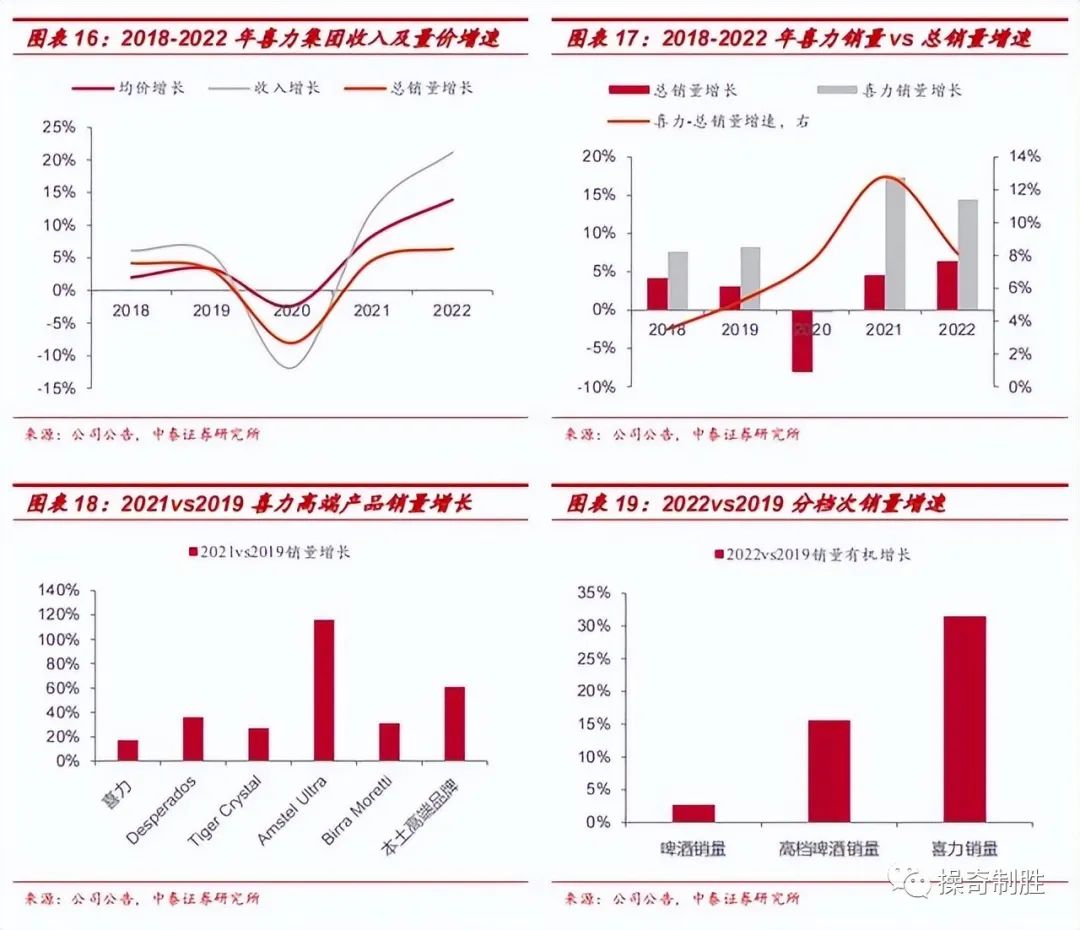 (2)喜力:2021-2022年持续受益疫后修复,高端回暖推动均价增长大幅提速。