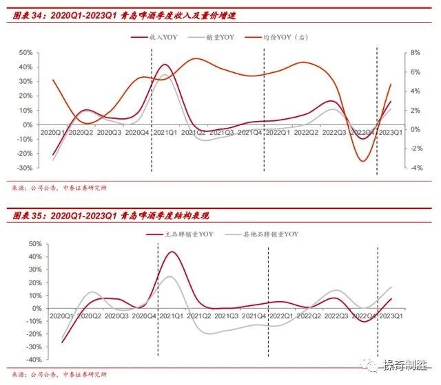 2020年是疫情元年,Q1疫情爆发,Q2-Q4进入恢复期,但大众消费(餐饮)率先复苏,高端餐饮和夜场修复较慢,因此2020Q2-2020Q4青啤均价逐季向上,期间结构也呈现波动,主品牌和其他品牌增速交替领先。