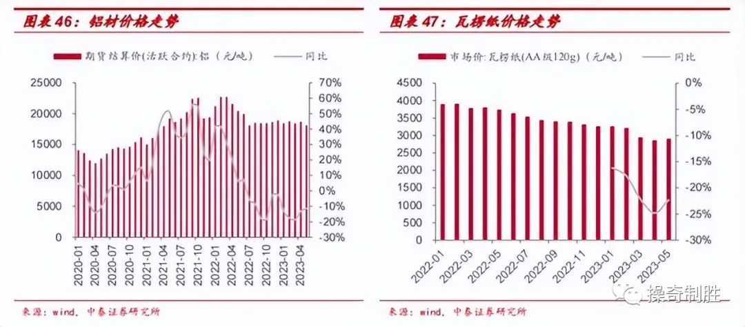 2023年易拉罐和纸箱价格走弱,包材压力趋缓。
