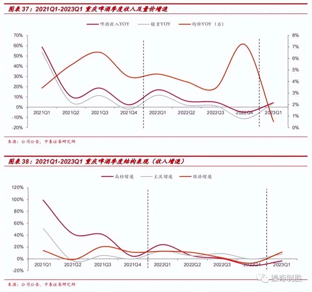 2023Q1大众餐饮率先修复,公司夜场主要销售的超高端啤酒1664及中高端餐饮主要销售的红乌苏(疆外)仍然承压,导致高档收入增速仍然最慢,ASP提升仅0.5%。后续随着夜场和高端餐饮修复,公司结构有望迎来扭转,推动ASP加速向上。