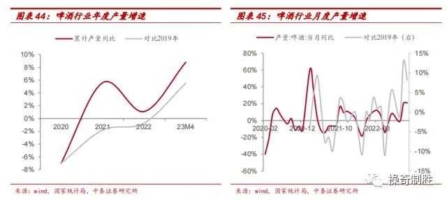 因此从年度的时间维度看,我国啤酒总量保持稳定,不存在明显的量增逻辑。但由于疫情反复、天气、库存变化等因素,啤酒月度产量存在明显波动。