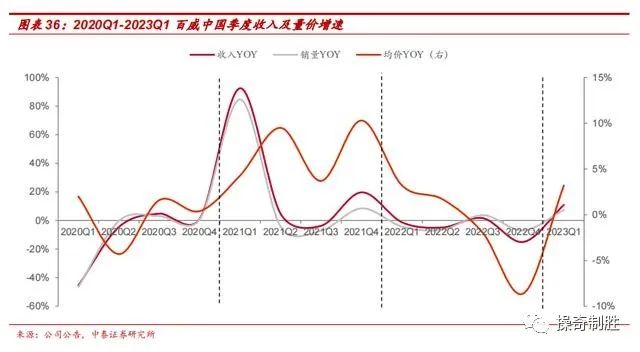 销量端,2018-2019年总销量增长5%和0;2020年总销量下降4%;2021-2022年销量持续修复,分别增长7%和6%。