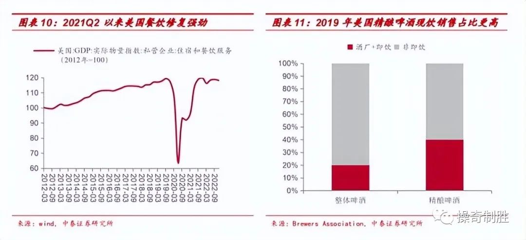 以美国为例,2019年疫情前美国整体啤酒市场的渠道组合中,酒厂现场+即饮渠道占比只有20%左右,而对于高档的精酿啤酒,酒厂现场+即饮渠道占比达到40%。