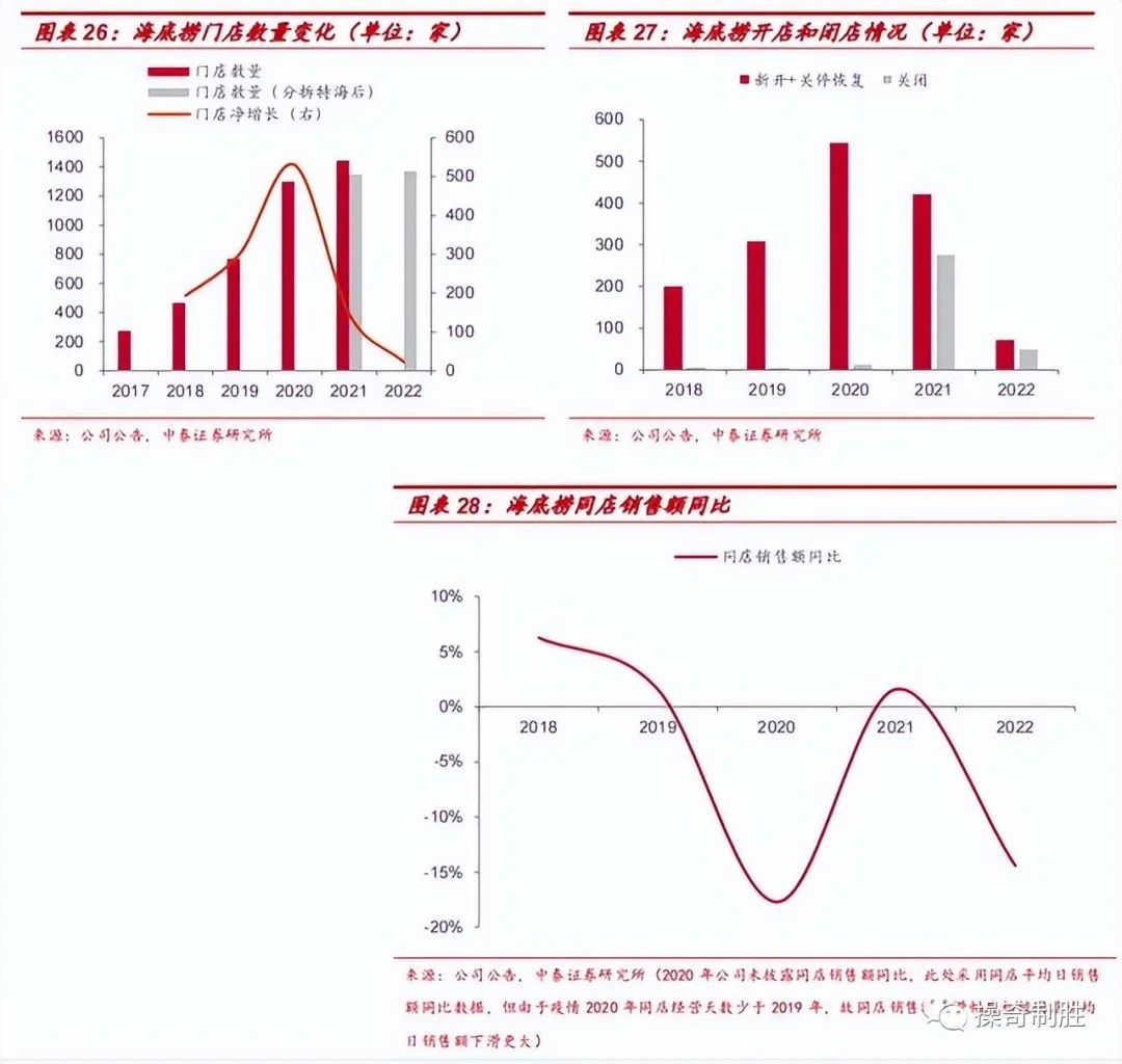 海底捞:2022年受疫情影响明显,净开店放缓,同店承压。