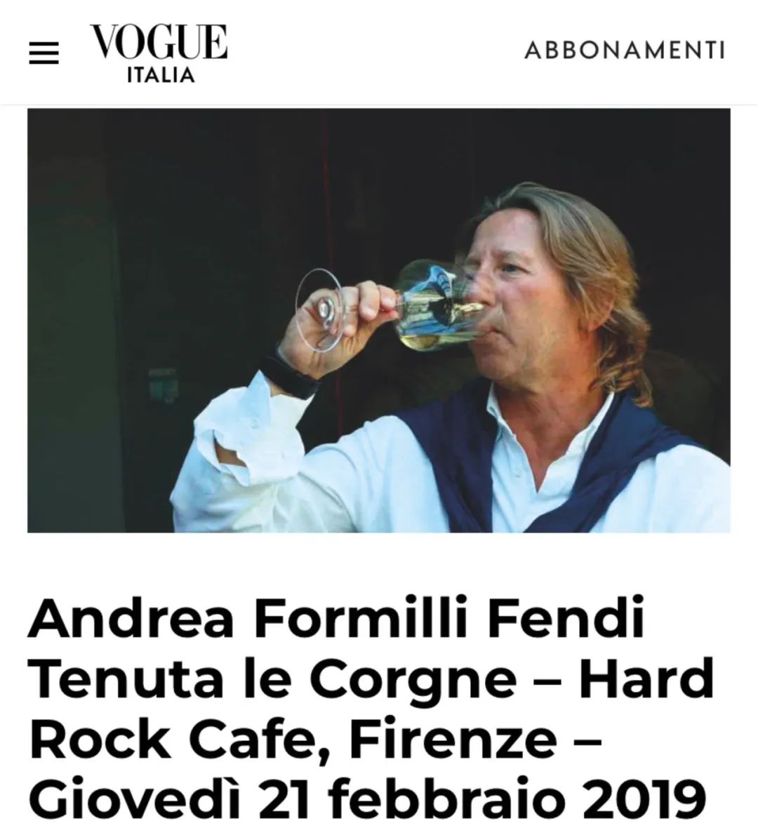 而在2019年于弗洛伦萨发布新酒时,Vogue意大利都对其进行了详细的报道“来自Fendi家族Le corgne葡萄园的全新葡萄酒”