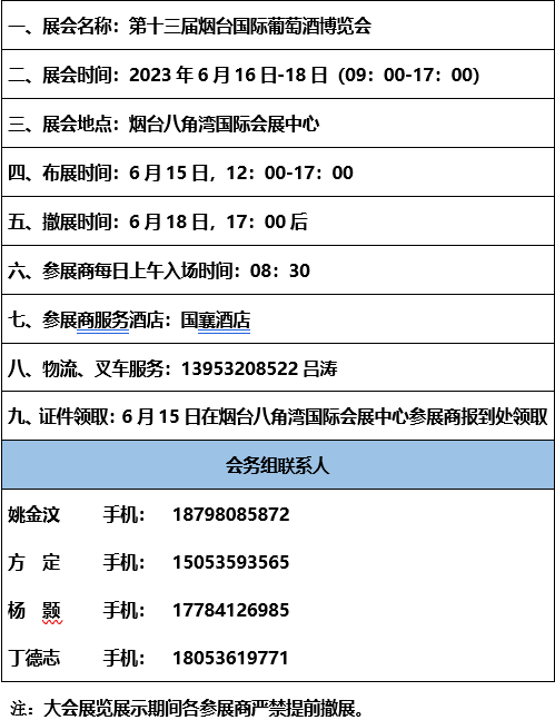 三、宣传服务:凡是参加展会的参展商,组委会将免费为参展企业在第十三届烟台国际葡萄酒博览会公众号提供推广服务(稿件由展商自行提供)。