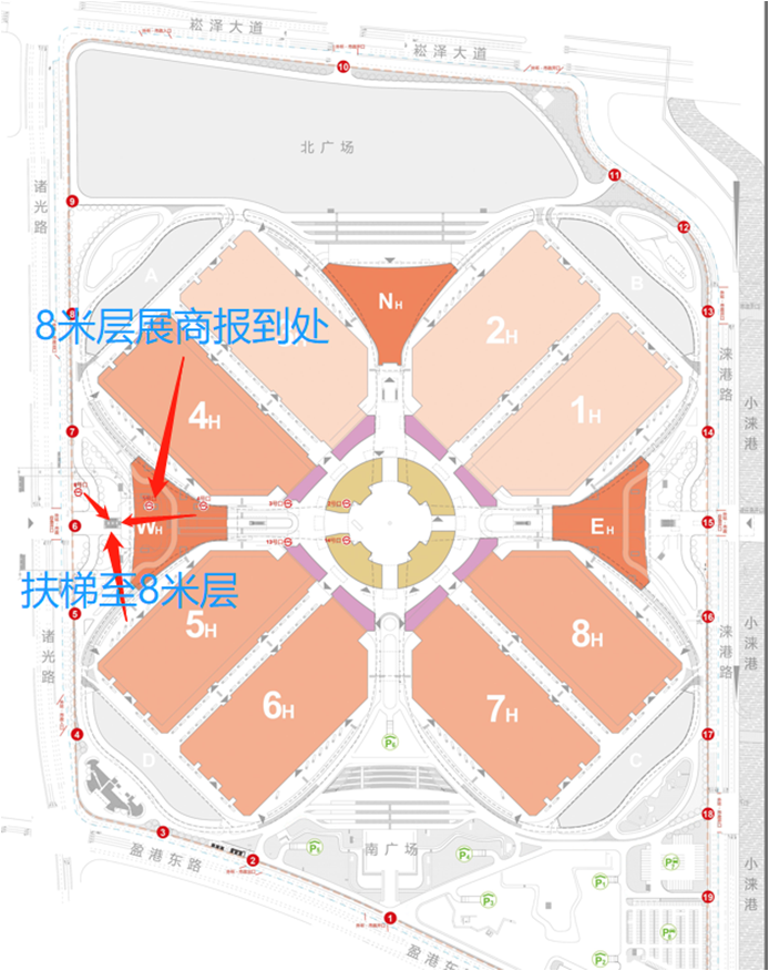 出租车:诸光路国家会展中心6号门下车→西厅0米层乘坐扶梯至西厅8米层→上海糖酒会展商报到处→领取展商证。