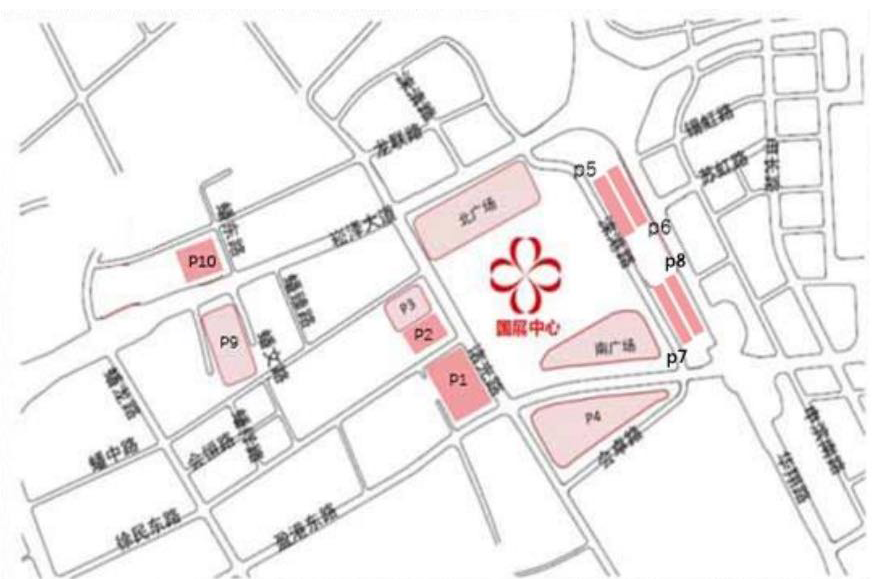 展会期间红线内停车场总计可提供约 5000 个泊位。其中北广场室外停车场可提供约 2200 个小客车泊位,南广场地下停车场可提供约 2500 个小客车泊位;其次,南广场地上可提供 300个小客车泊位。