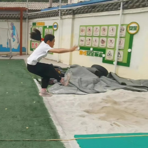 参加跳远训练的几名小队员,从不会跳到站到赛场,经历了非常辛苦的两个月,秦老师给小队员们请来专业的跳远教练,从技术动作到力量训练,一项一项逐步提高,终于获得了喜人的成绩。