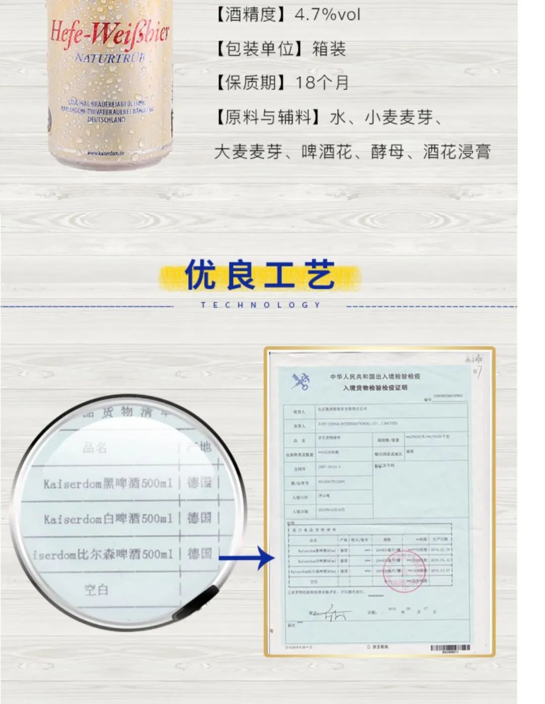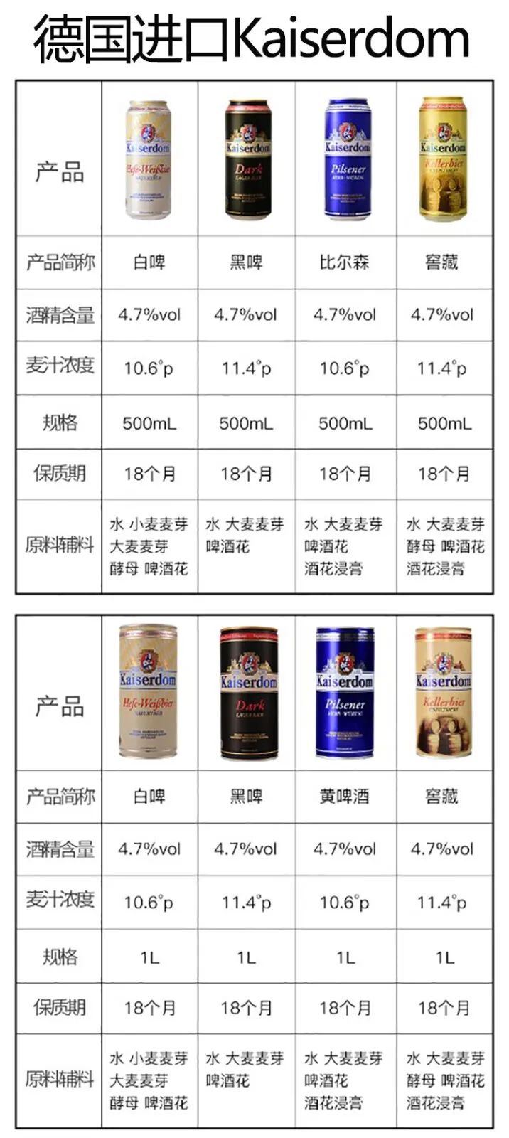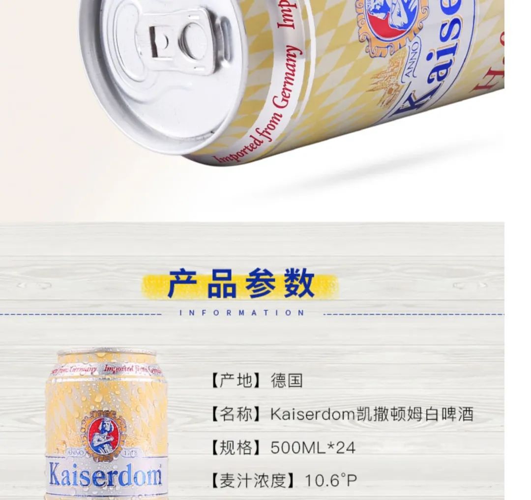 Kaiserdom凯撒小麦啤酒 德国原装进口啤酒整箱装 凯撒白啤1L*12罐
