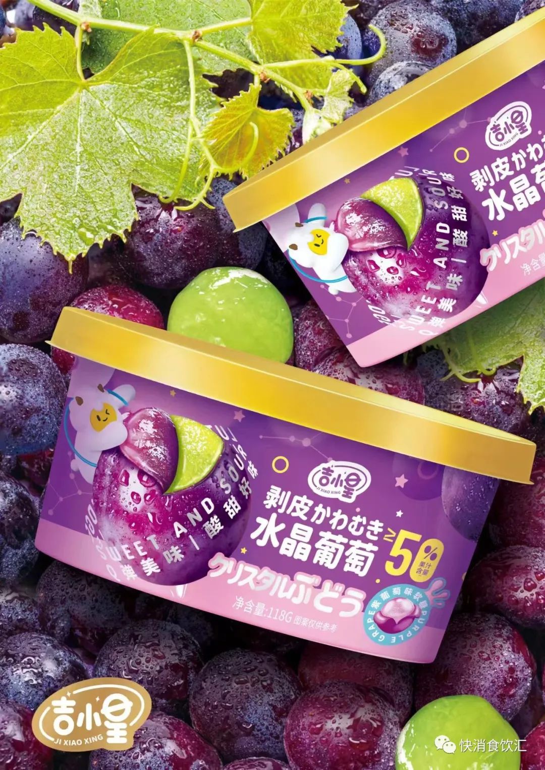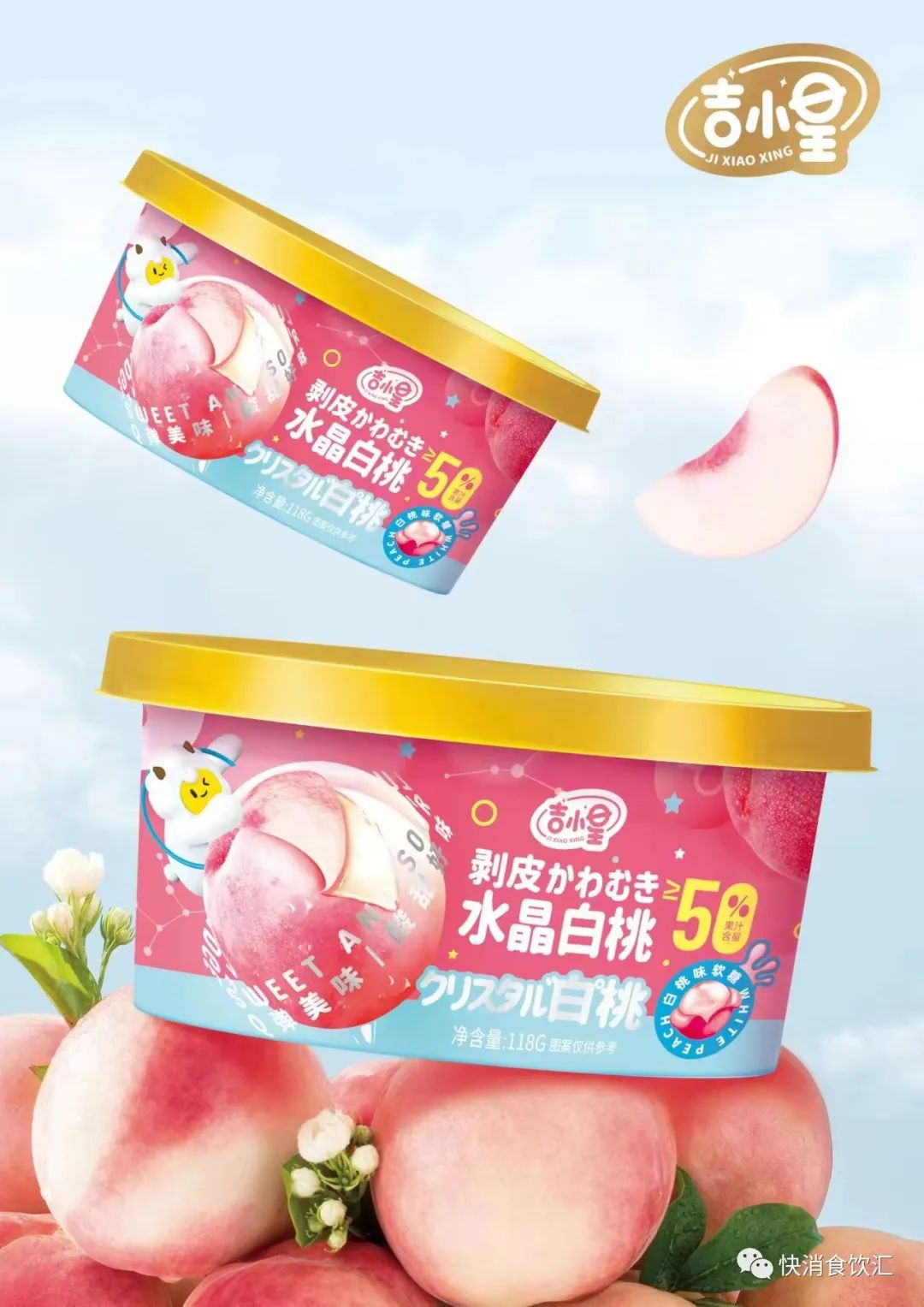 吉小星剥皮糖,Q弹易剥,果真有“芯”,0脂肪,果汁含量≥50%以上。pvc盒装,高端大气易陈列。