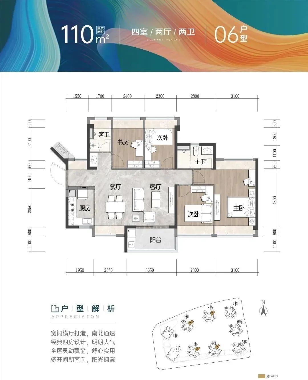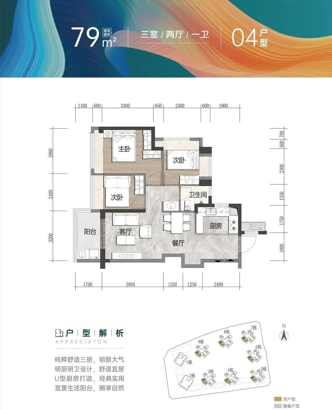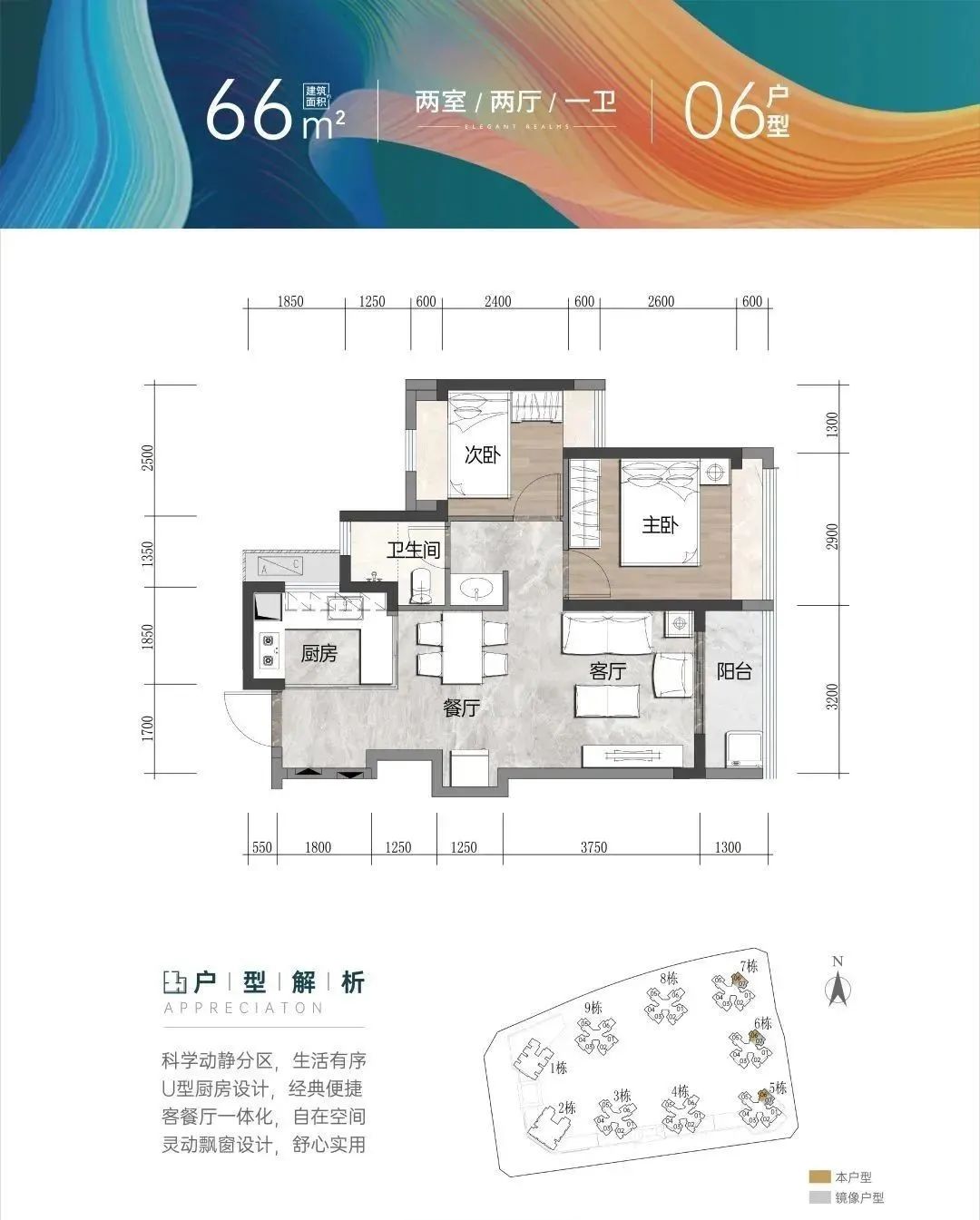 会展湾雍境花园分一期、二期开发,7栋商品房,2栋保障房,共2043套。其中商品房1331套,保障房712套。一期商品房551套、保障房712套,二期全部为商品房780套。