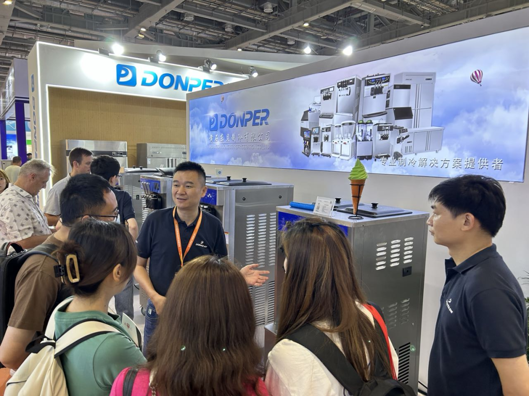 此次东贝制冷公司将展位设在了以“冰淇淋与烘焙”为主题的2.1号展馆内,D08展位的全场C位区位优势,加上一直以商用制冷技术深耕,致力于满足客户整店式解决方案需求的定位,使得整个展会期间东贝制冷展位始终新老客商络绎不绝,气氛火热。