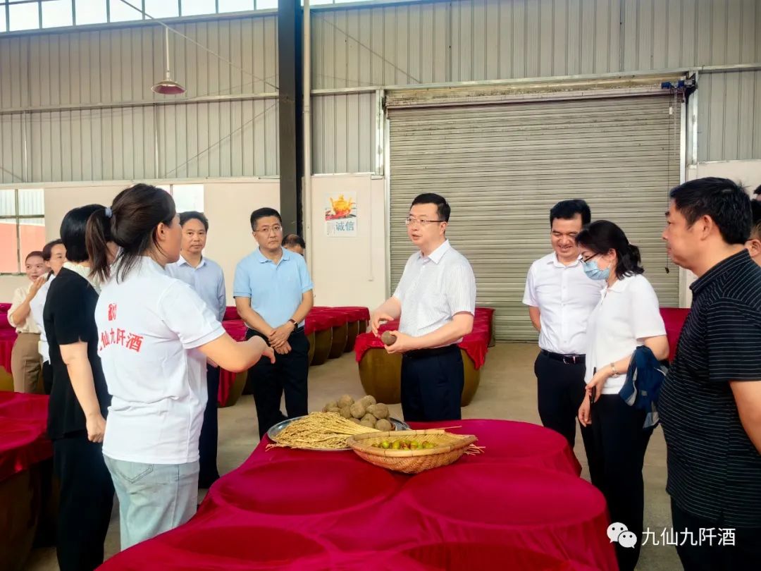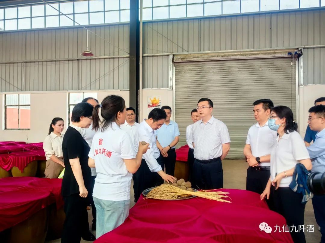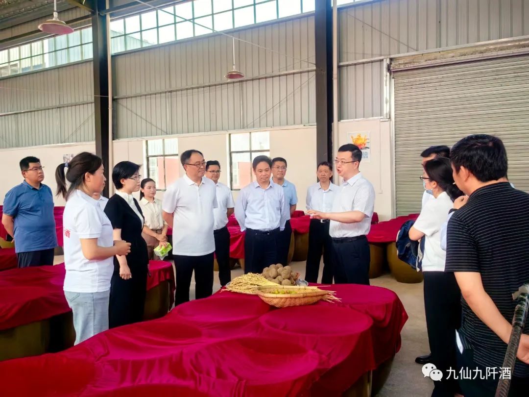 当天,罗强一行到贵州九仙糯窖九阡酒有限公司调研,通过实地查看、听取汇报,详细了解九阡酒生产工序、产业规划、企业生产经营等情况。