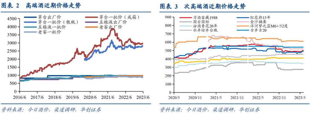 酒企端保持信心,务实走量,布局积极。酒企端普遍对行业展望理性乐观,战略保持清晰坚定,内部保持高昂士气,信心较足布局积极,不约而同更加强调产品矩阵、数字化、品牌文化赋能等关键词。站在年中这个时点看,上半年酒企年内规划稳步推进,销售策略上多选择务实走量,同时更加积极地布局非标产品等增量,兼顾份额业绩与价盘质量,目前看头部一二线酒企可实现“时间过半,任务过半”。下半年看,酒企经营或可相对从容,更多酒企已在酝酿价格措施,判断全年报表业绩目标可顺利完成。