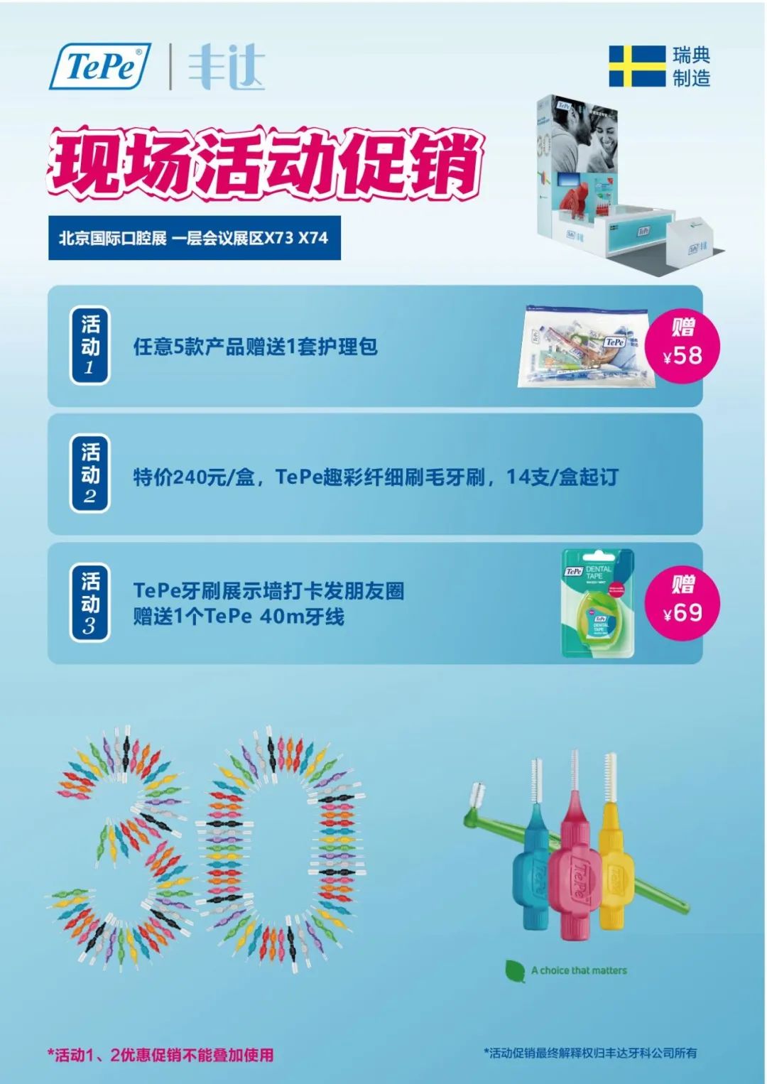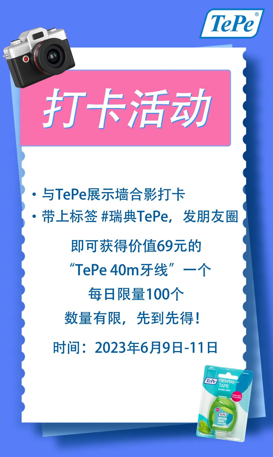 来TePe展位打卡即可获得”TePe40m牙线“1个