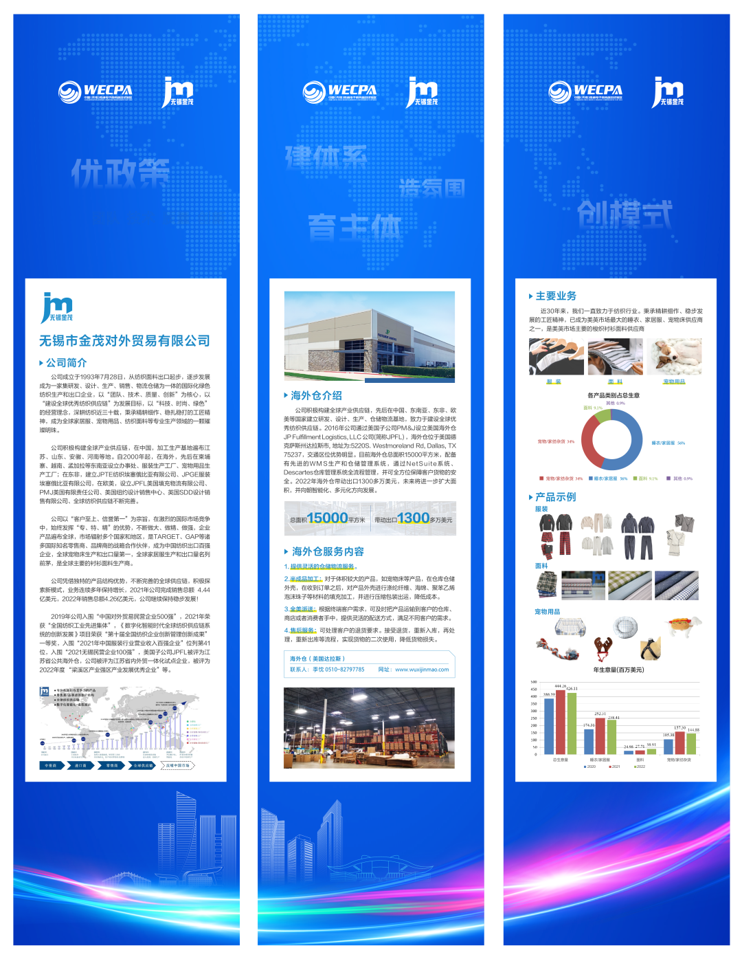 展会汇集无锡地区的优秀跨境电商企业,展出企业涵盖多个行业,如纺织类的无锡市金茂对外贸易有限公司;电动车类的无锡圣达车业科技有限公司;智能建筑类的江苏智建美住科技有限公司;汽车零部件类的无锡威孚国际贸易有限公司;以及无锡跨境电商综合服务中心,为跨境电商企业提供一站式服务,助力企业拓展国际市场。这些企业在各自领域取得了显著的成绩,展现了无锡产业的优势和实力。