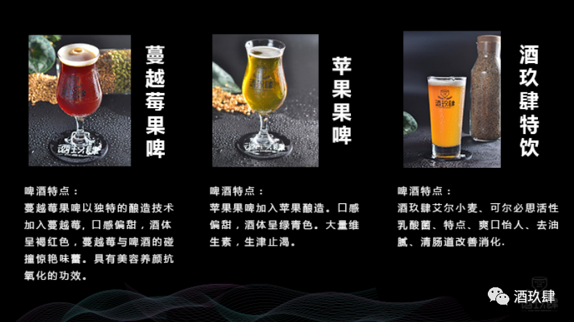 一款好的精酿啤酒是用麦子通过粉碎、糖化、沉淀、冷却等等多达十几道工序最后发酵完成中间不能马虎一点,这样酿出来的精酿喝一口能让人仿佛置身于田堤上,会让人忘记城市里的喧嚣。