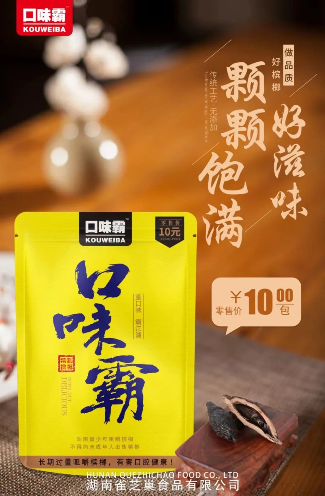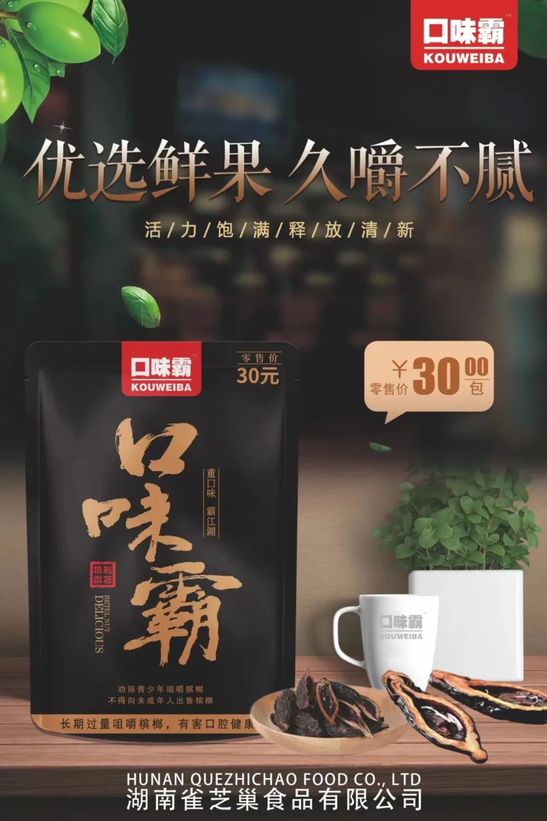 产品介绍:公司所生产加工的“口味霸”品牌系列槟榔,以其“醇正、柔和、唇齿留香、回味绵长”的特点和长期以来不求好,只求更好的服务理念,深得消费者的青睐