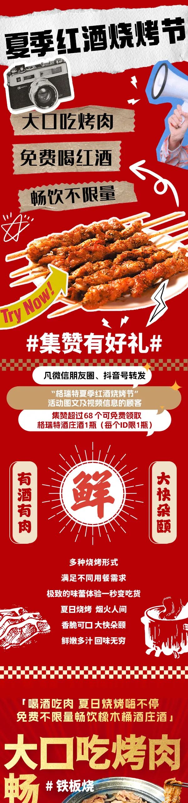 夏季红酒烧烤节|吃肉喝酒饮天光 红酒免费不限量!!