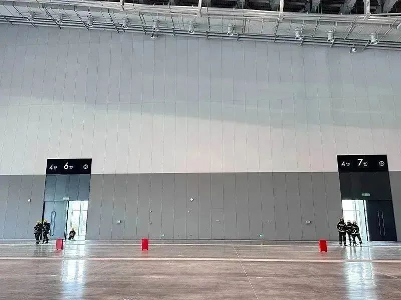 演练开始前,在临空国际会展中心负责人的陪同下,全体指战员对会展中心内部建筑结构、中控室、消防设施、疏散通道、周边水源等情况进行了全面熟悉,各消防救援站干部就出现火灾后,各站如何停车站位、第一时间到场展开作战等进行了交流和模拟推演。随后,支队围绕人员密集场所火灾特点和处置要求,设置了初期处置、侦查警戒、外部压制、火场内攻、火场排烟、疏散搜救、固定消防设施运用、紧急撤离等科目,全面检验了指战员在实战环境下侦查、灭火、排烟、搜索、供水等技战术运用及多个消防救援站联合作战、协同配合能力。