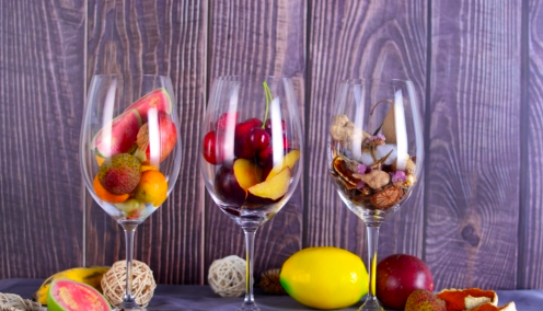 葡萄酒的水果味是指它所展现出来的类似于各种水果的香气和风味特征。比如,有些白葡萄酒会散发出类似于柑橘和芒果的香气,而有些红葡萄酒会散发出类似于樱桃和无花果的香气。不同葡萄酒的水果风味往往浓淡不一,不过葡萄酒中的水果风味如果太过张扬,酒中的酸和单宁就会对它产生抑制作用,让葡萄酒的整体风格显得更加均衡和谐一些。如果一款葡萄酒的单宁含量比较低,它的果味就会显得比较明显和直接;同样的,如果葡萄酒的酸度比较低,它的果味也能得到充分的展示。有些人会把葡萄酒的果味和甜味混为一谈,这是不够正确的,因为所有的葡萄酒或多或少都具有水果的香气和风味,但不是所有葡萄酒都是甜的。