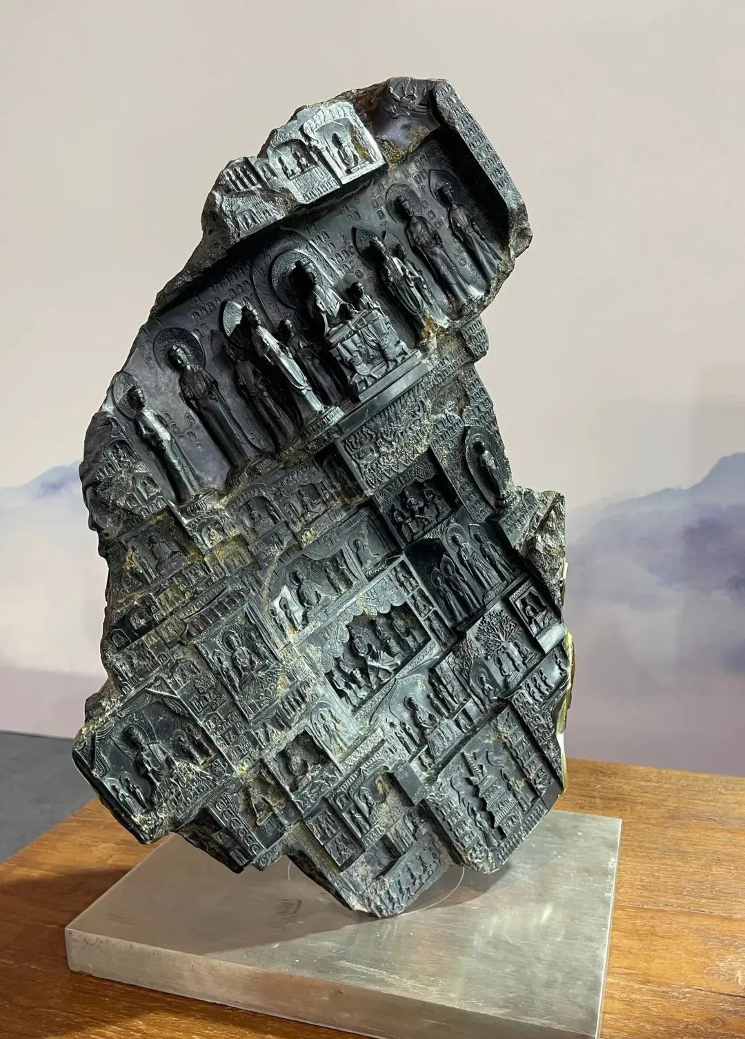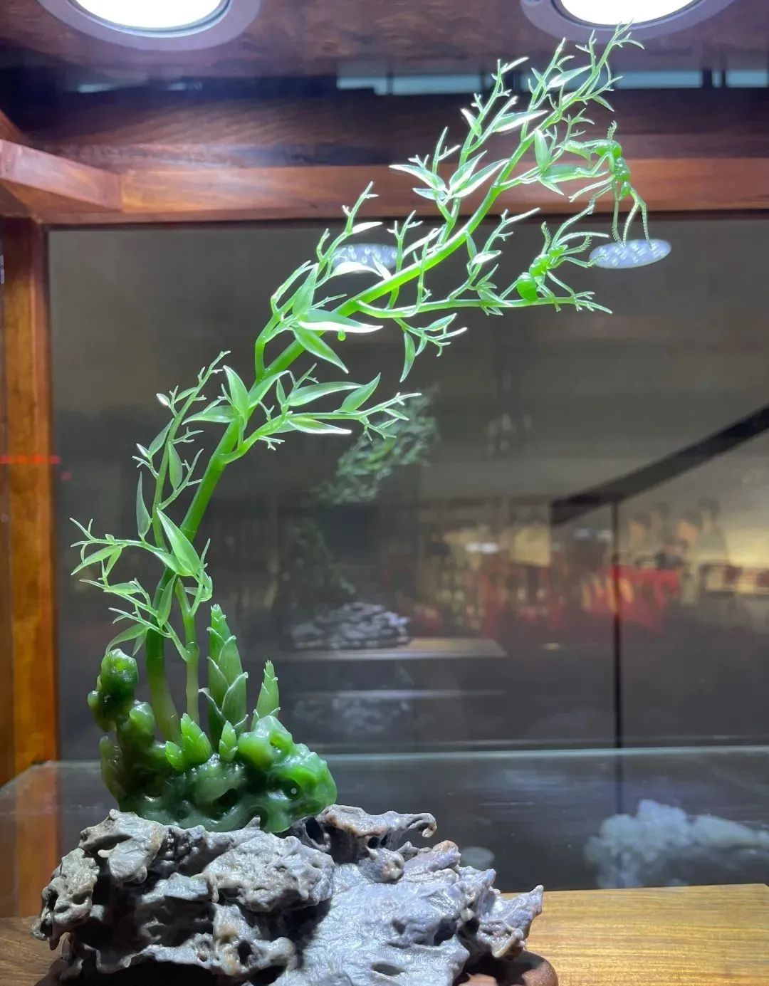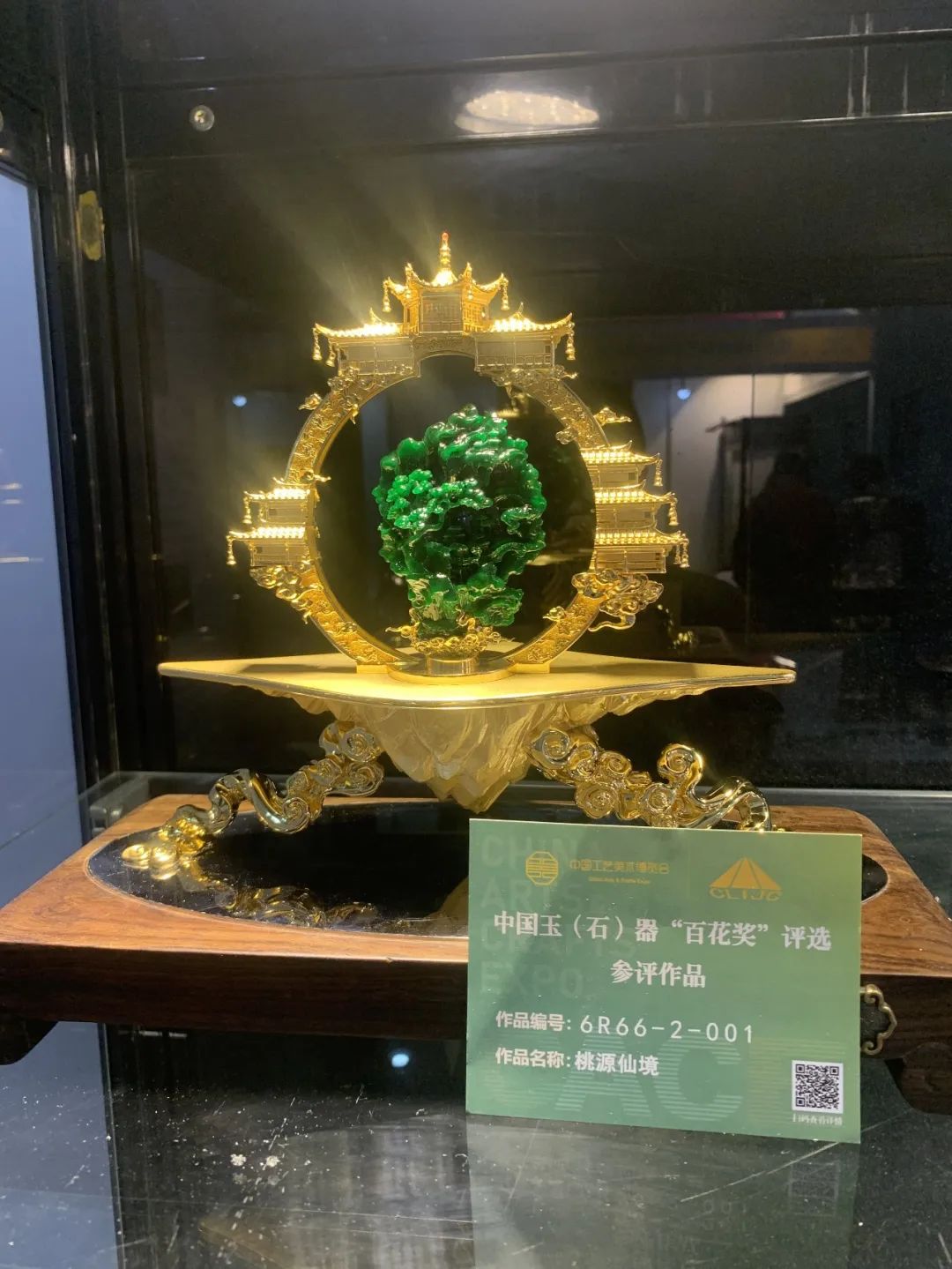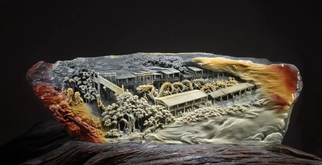 廖军在介绍“百花奖”参评作品时指出,本次参评作品有新创意、新题材、新材料、新技法和新展陈形式,令人耳目一新,“百花奖”品牌效应的影响力正在不断彰显。参评作品中弘扬主旋律、讴歌新时代的作品占有较大比例,表现手法多样,有现实主义也有浪漫主义,参评作品将优秀传统文化的基因融入现代时尚,力求用时代语言表现传统文化,如石雕作品《日出》将精细的人工雕刻与自然的色彩和如云似烟的纹理融为一体,石雕作品《龙腾盛世》把舞龙表演的镂空花球结合石材巧色运用,玉雕作品《古韵四神系列》巧妙地利用玉的皮色和不同的玉料进行装饰组合,实现古为今用。