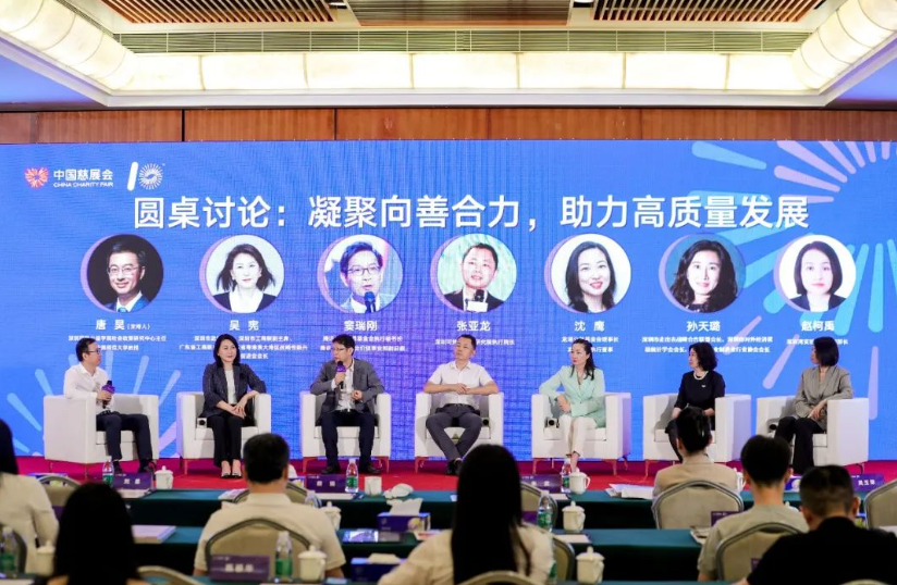 深圳市政协委员、深圳市工商联副主席、广东省工商联常委、广东省粤港澳大湾区战略性新兴产业发展促进会会长吴宪,深圳国际公益学院社会政策研究中心主任、华南师范大学教授唐昊,深圳可持续发展研究院执行院长张亚龙,腾讯公益慈善基金会执行秘书长、腾讯可持续社会价值事业部副总裁窦瑞刚,龙湖公益基金会理事长、龙湖集团执行董事沈鹰,深圳市走出去战略合作联盟会长、深圳市对外经济贸易统计学会会长、深圳市工业制造业行业协会会长孙天璐,深圳湾实验室转化部部长赵柯禹等多位来自科技向善、社会服务、可持续发展及战略性新兴产业等多个领域的专家学者,围绕“凝聚向善合力,助力高质量发展”进行圆桌会议,探讨面对新时期慈善事业高质量发展的新形势、新任务、新要求,如何从自身优势出发促进慈善与经济社会各领域深度融合、协同共进,共话社会慈善力量助力高质量发展的多元路径与模式。