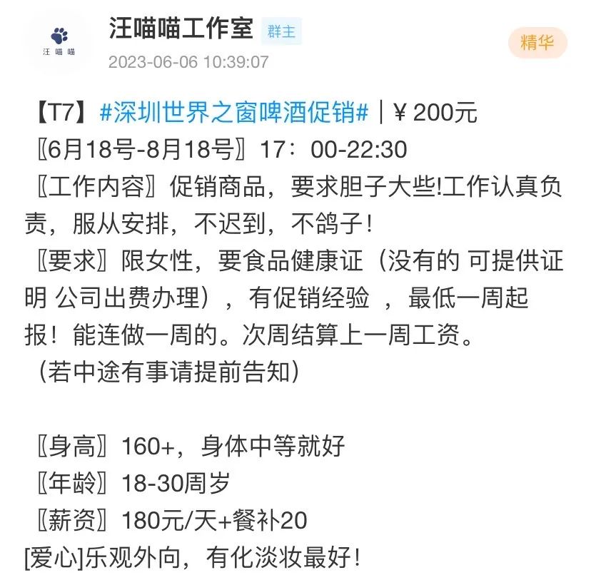 另:若在兼职活动合作的过程中,遇到任何押金索取/服装费用/恶意克扣工资/恶意拖欠工资等任何活动方违规行为,均可在深圳喵社-曝光举报栏发布处理(不可涉及个人隐私)!
