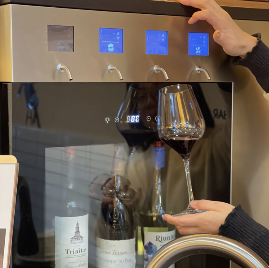 此外为了降低客户的试错成本,店内还有分酒机可提供4款店内的葡萄酒试饮和杯卖,单杯价格在30元左右,这个价格着实让小编惊讶了一番!