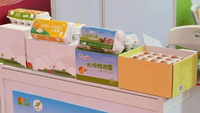 活动现场,展示出4枚/6枚装精品鲜蛋、40枚装礼盒与电商款鸡蛋、10枚装上海农场土鸡蛋以及苏北散养草鸡蛋。