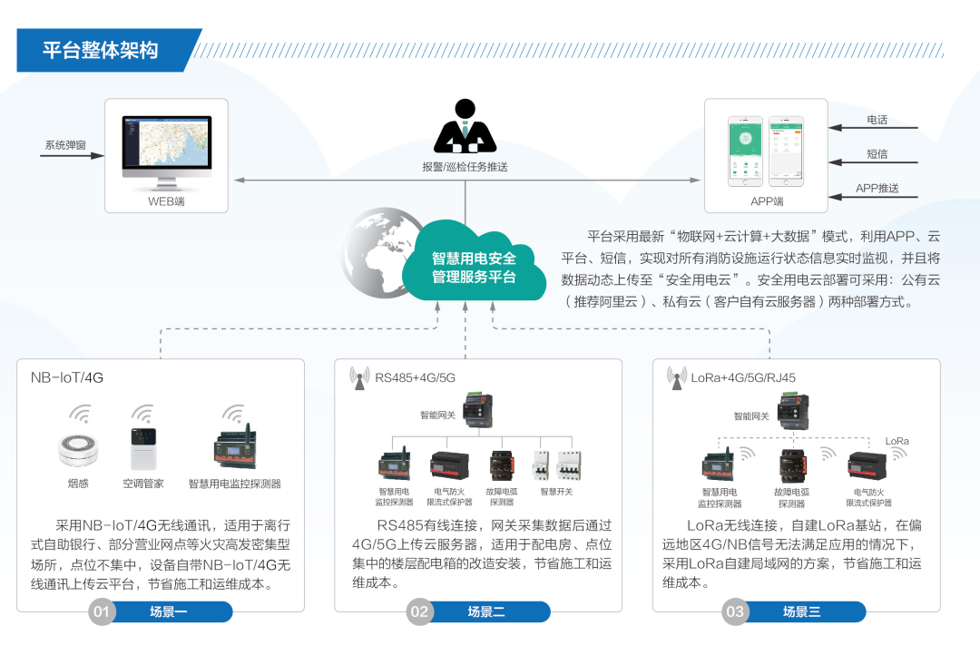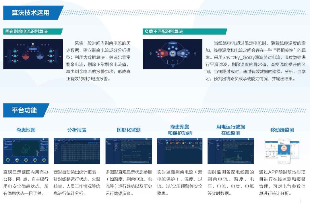 派诺科技金融行业智慧用电安全管理服务平台利用物联网、云计算和大数据、人工智能及边缘计算等先进技术,采用自主研发的智慧用电监控探测器、智能网关等,对引发电气火灾的主要因素进行实时动态感知、异常预警,通过物联网技术将数据传送至平台,轻松实现用电安全数据从现场到云端、从云端到监控终端的高效传输,智能分析漏电、过载、短路、线缆温度异常等运行状态,精准定位电气火灾隐患,让用电安全看得见、摸得着、防得了、控得住,让用电安全隐患无处可藏。赋能银行用电安全管理从“粗放、传统、低效”向“精细、智能、高效”转变,保障银行员工、客户的人身和财产安全,助力平安中国建设。