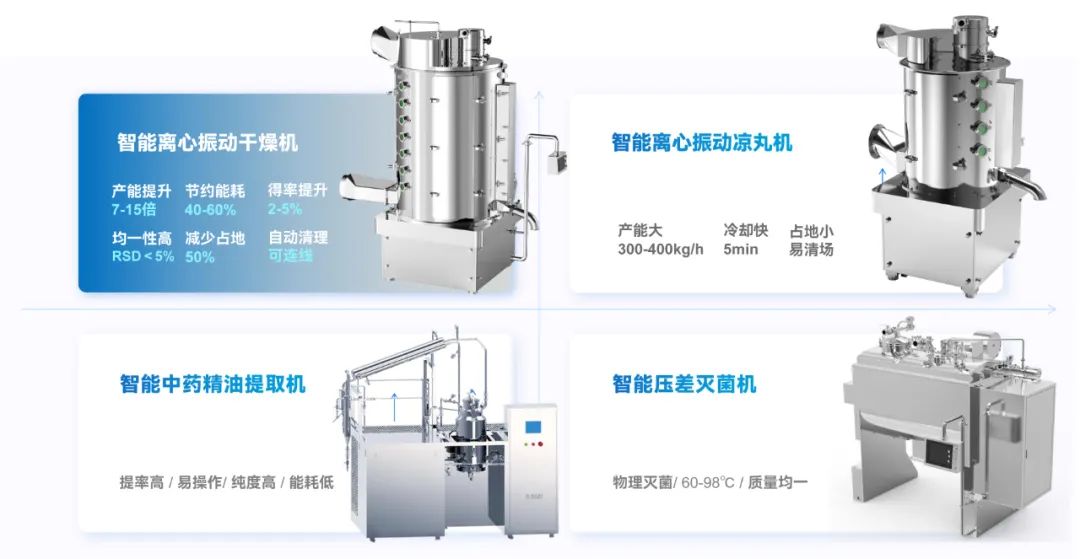 通过持续不断的精耕细作,赫柏康华在制药装备领域取得了令人可喜的成绩。智能离心振动干燥机的上市,解决了多年来丸剂干燥领域存在的能耗高、产能低、清场困难、无法连线生产等难题;智能压差灭菌机为纯物理灭菌、具有灭菌温度低(60-98℃)、灭菌率达99.5%,灭菌物料质量均一等性能优势;赫柏康华团队研发的智能中药精油提取机也初步解决了中药精油提取过程中挥发油品相差、易乳化、提取率低、能耗高药材利用率等行业共性问题。截至目前,企业共获授权专利32项,其中发明专利5项,另有一项团体标准已成功立项,处于申报状态。