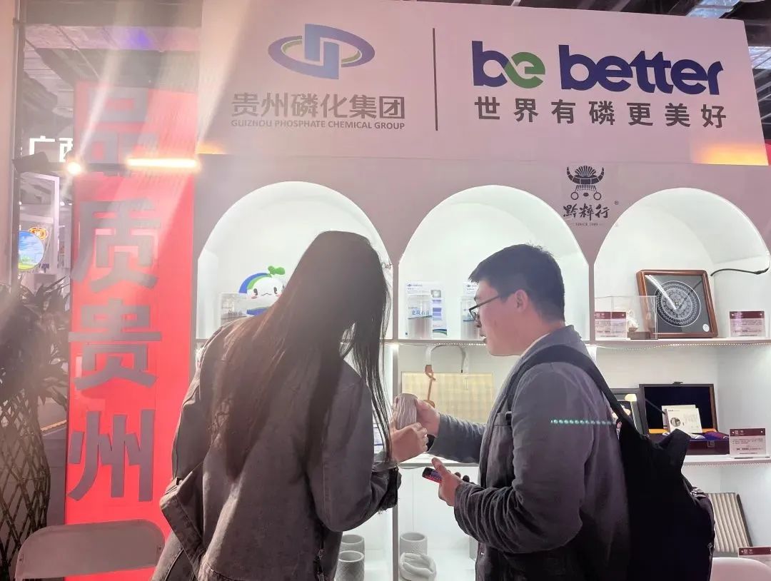 本次品牌日活动,贵州磷化紧紧围绕磷化工全产业链,在贵州馆精品区展示了磷矿石、净化磷酸、磷酸铁、磷酸铁锂、六氟磷酸锂、各类高端新型化肥、精细磷酸盐等产品;在企业陈列区展示了磷石膏墙材、板材、粉材、磷石膏花盆、磷石膏制“纸箱”等展品。以产业链为主线展现世界有磷更美好的企业品牌核心价值理念。