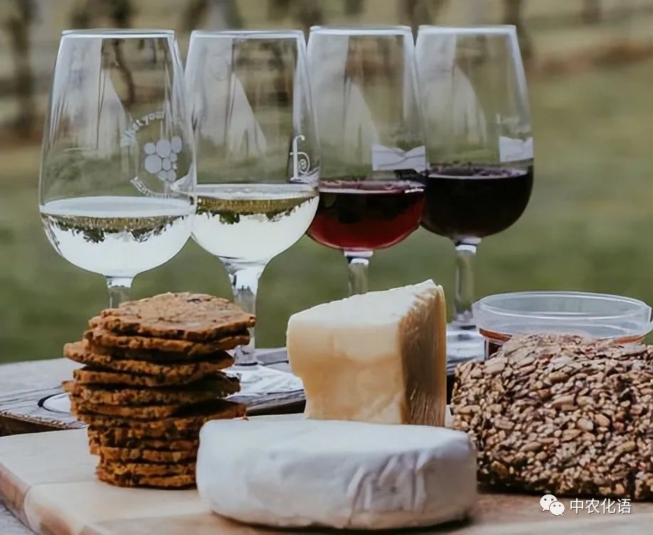 葡萄酒中的酚类物质主要来源于花色素和单宁。花色素,又称为花青素,是水溶性天然色素,是花色苷水解而得的有颜色的苷元,广泛存在于自然界的大部分植物中。葡萄酒中的花色素主要来源于葡萄皮。单宁是一种带有苦味和涩味的化合物,即便口感苦涩,但若处理得当,则会成就美味。葡萄酒中的单宁来源于葡萄籽、皮、茎以及老化的木桶(鞣花酸与肉桂酸都是橡木桶中常见的酚类,这也是橡木桶显著作用于葡萄酒颜色品质的重要机理进展[2]),从而提供口感、质地和重量以及结构感(丹娜、赤霞珠)。同时,酿制的过程需要必要的温度、加压等化学环境条件,才能酿制好葡萄酒。