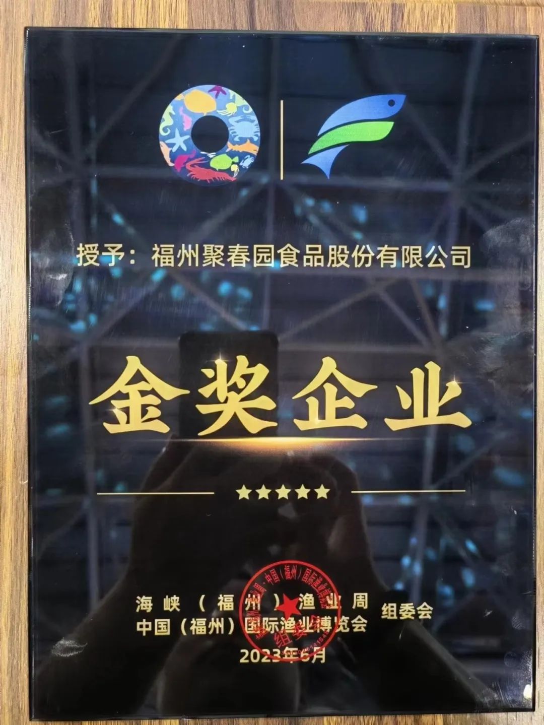 ( 本届“渔业周”聚春园食品股份有限公司被评为金奖企业 )
