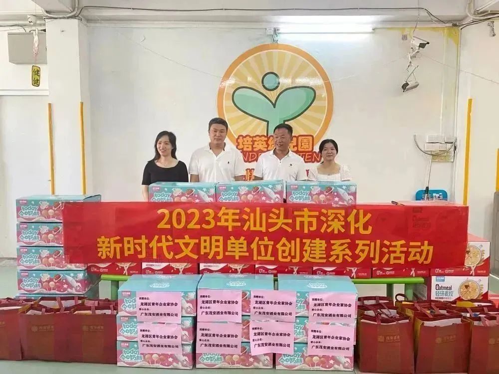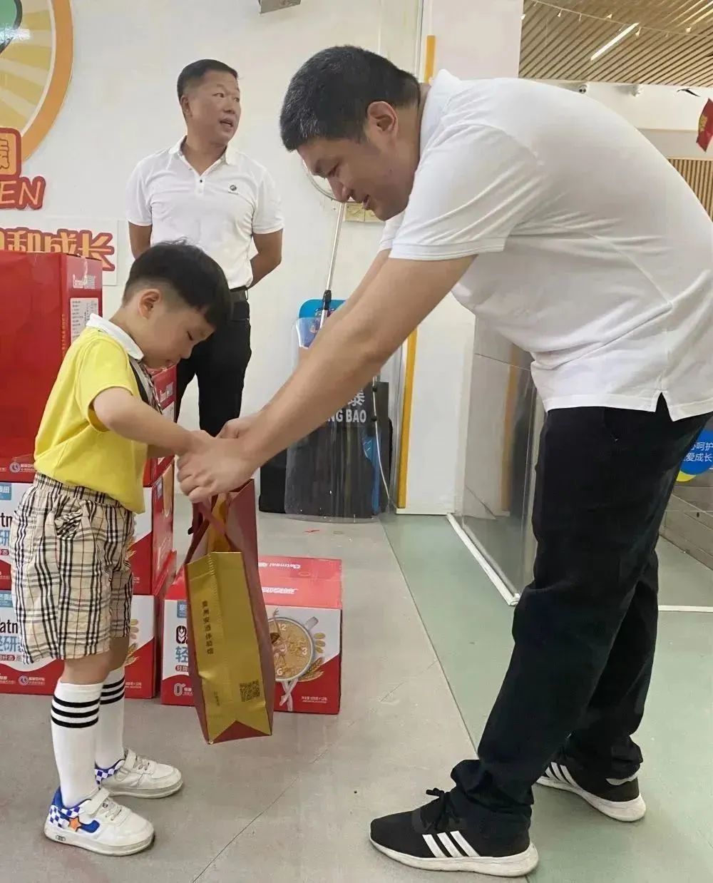 分发礼物的现场,小朋友们整齐排队,逐一领取礼物,乖巧可爱。