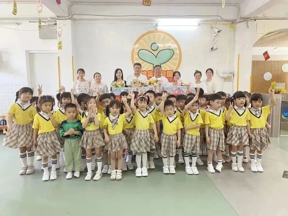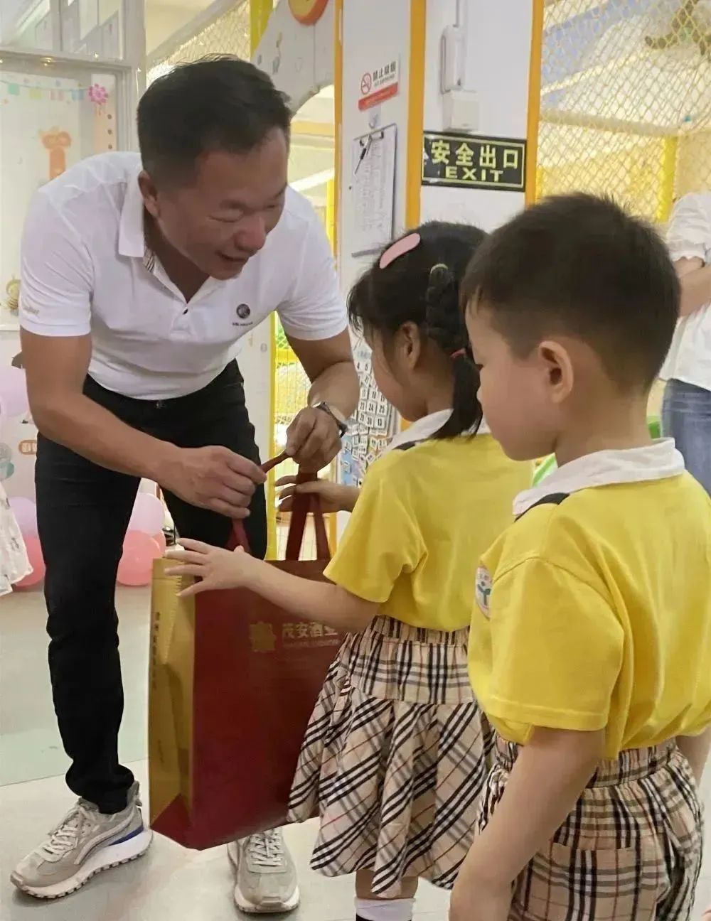 小朋友们向叔叔阿姨们献上鲜花,表达感谢之情。