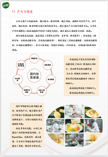 1.公司不断持续加大研发投入,对豌豆全产业链上的关键技术、关键产品进行深度研发和技术攻关。连续四年研发投入持续稳定增加,2019年4872.50万元、2020年5810.53万元、2021年7245.14万元、2022年7040.36万元,持续提高的研发投入和研发团队力量,对公司研发能力的保障和可持续核心竞争力的打造提供了坚实基础。2.多项关键技术达到国际先进水平、行业先进水平。公司“龙口粉丝产业链关键技术”达到国际领先水平、“利用土著乳酸菌提高豌豆淀粉分离效率的研究及产业化”技术水平达到国际先进水平、“低钠高钙零大豆过敏原豌豆分离蛋白的研究及产业化”技术水平达到国际先进水平。3.公司始终秉持“做放心食品、做良心食品”理念,将产品质量安全始终放在第一位,从源头把好产品品质,这是公司从根本上强化产品质量管控的原则。4.公司积极践行“双碳战略”,着眼于废水、废渣的综合利用,真正实现了一粒豆子的全价值利用。