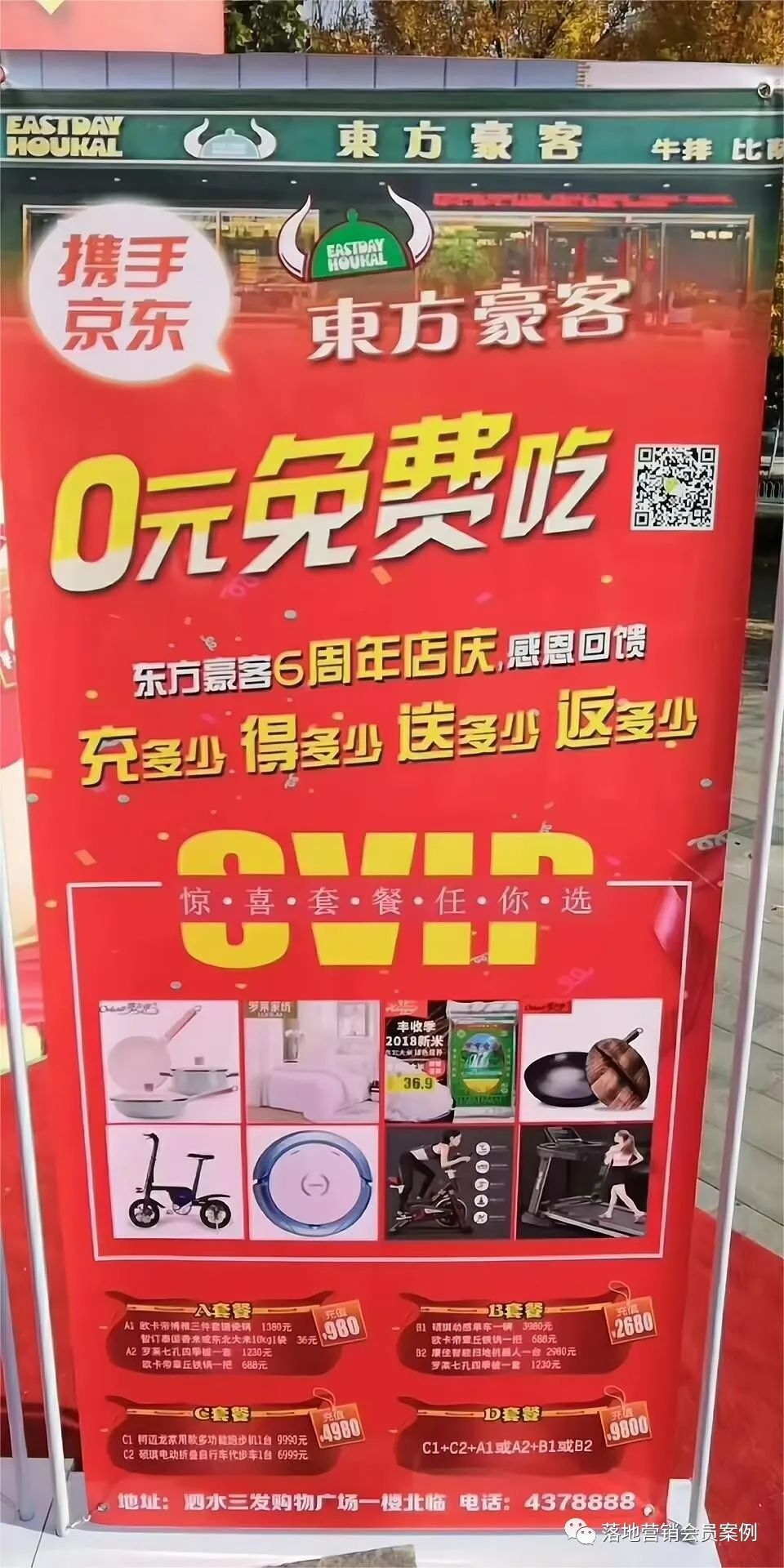会员案例|餐饮行业:东方豪客牛排6周年店庆,0元免费吃,吃多少就送多少!